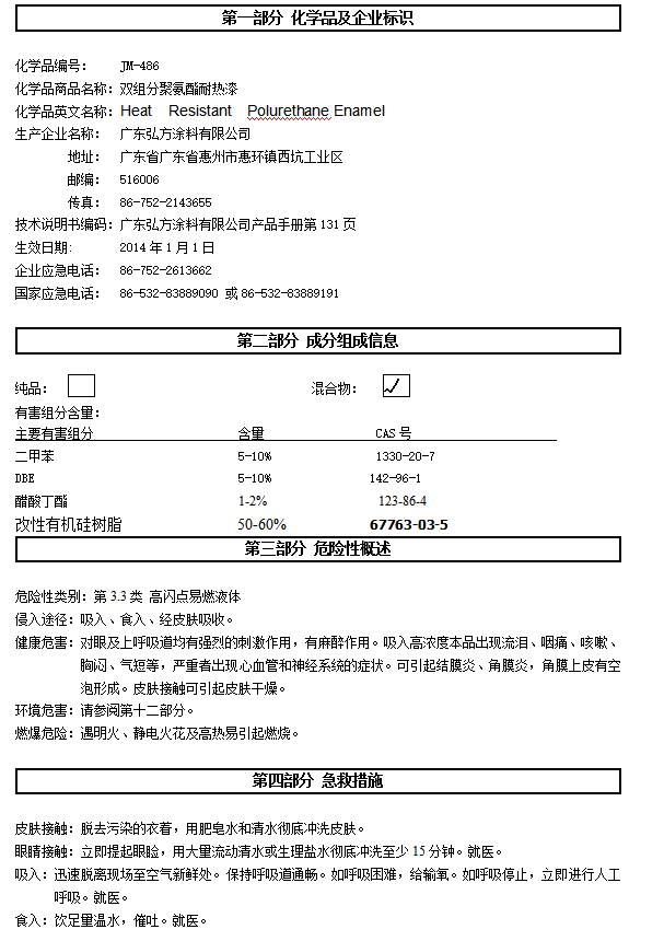 • 產(chǎn)品名稱:JM-486聚氨酯耐熱漆
