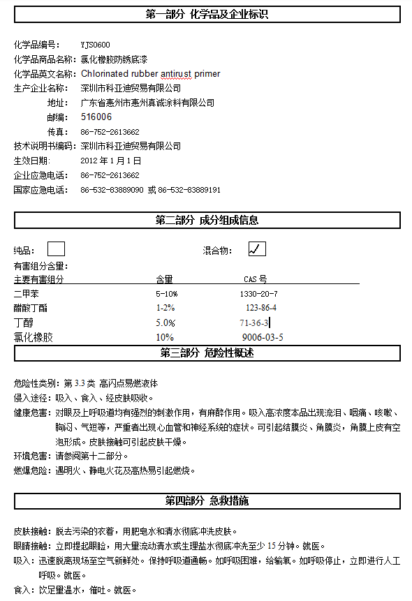產(chǎn)品名稱 氯化橡膠防銹底漆
